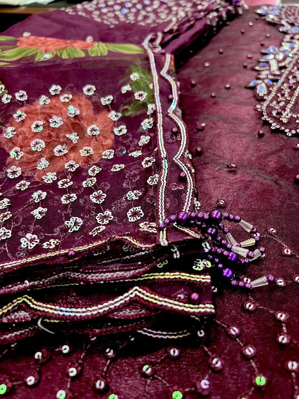 Dupatta: Heavy embroidered digital printed organza dupatta with elegant cutwork borders