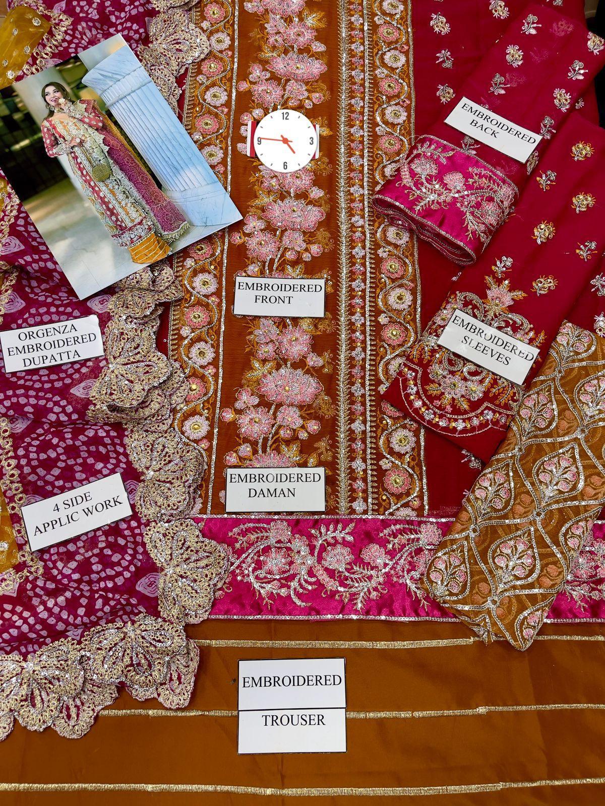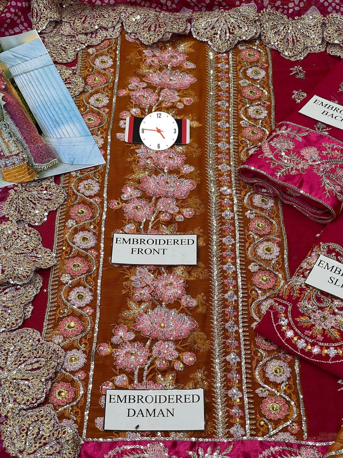 CRIMSON – Luxury Chiffon Unstitched Replica 3-Piece Suit with Handwork & Sequence Embroidery
