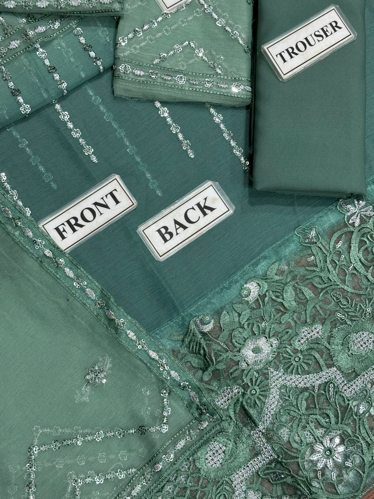 The chiffon shirt drapes beautifully, while the malai trouser ensures comfort and structure. Every detail, from the embroidered panels to the airy texture, is crafted to enhance your look with effortless sophistication.