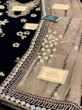Organza digital printed dupatta featuring heavy embroidered sequin work and four-sided embroidered borders