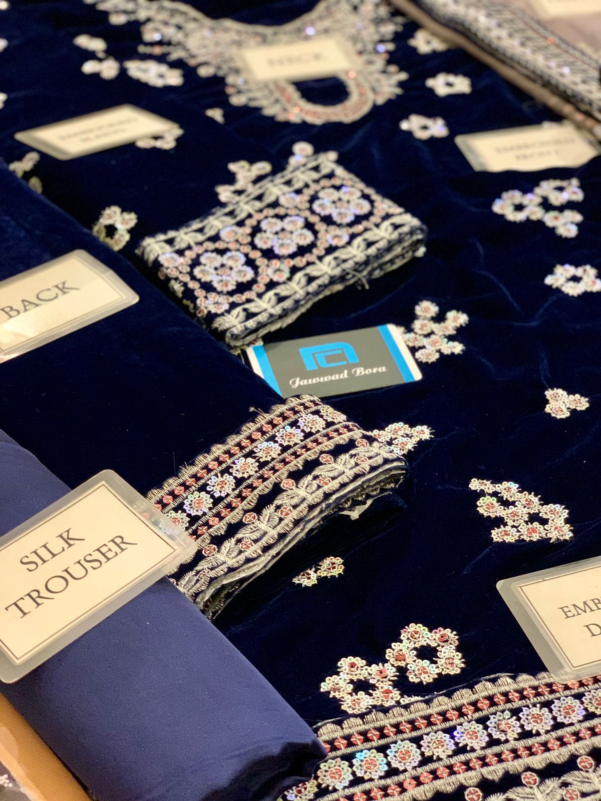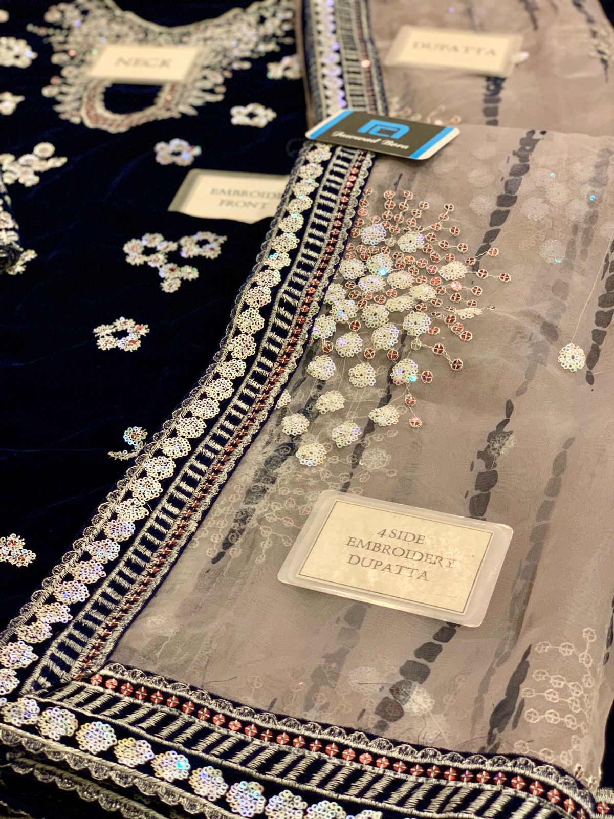 Fully embroidered velvet daman border and chakk lace detailing for a luxurious finish