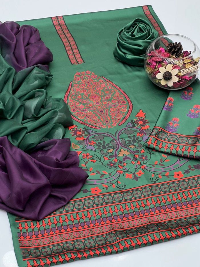 Crafted from soft shamooz silk, this outfit adds a refined touch to your wardrobe with its smooth texture and vibrant digital prints, perfect for both casual wear and semi-formal gatherings.
