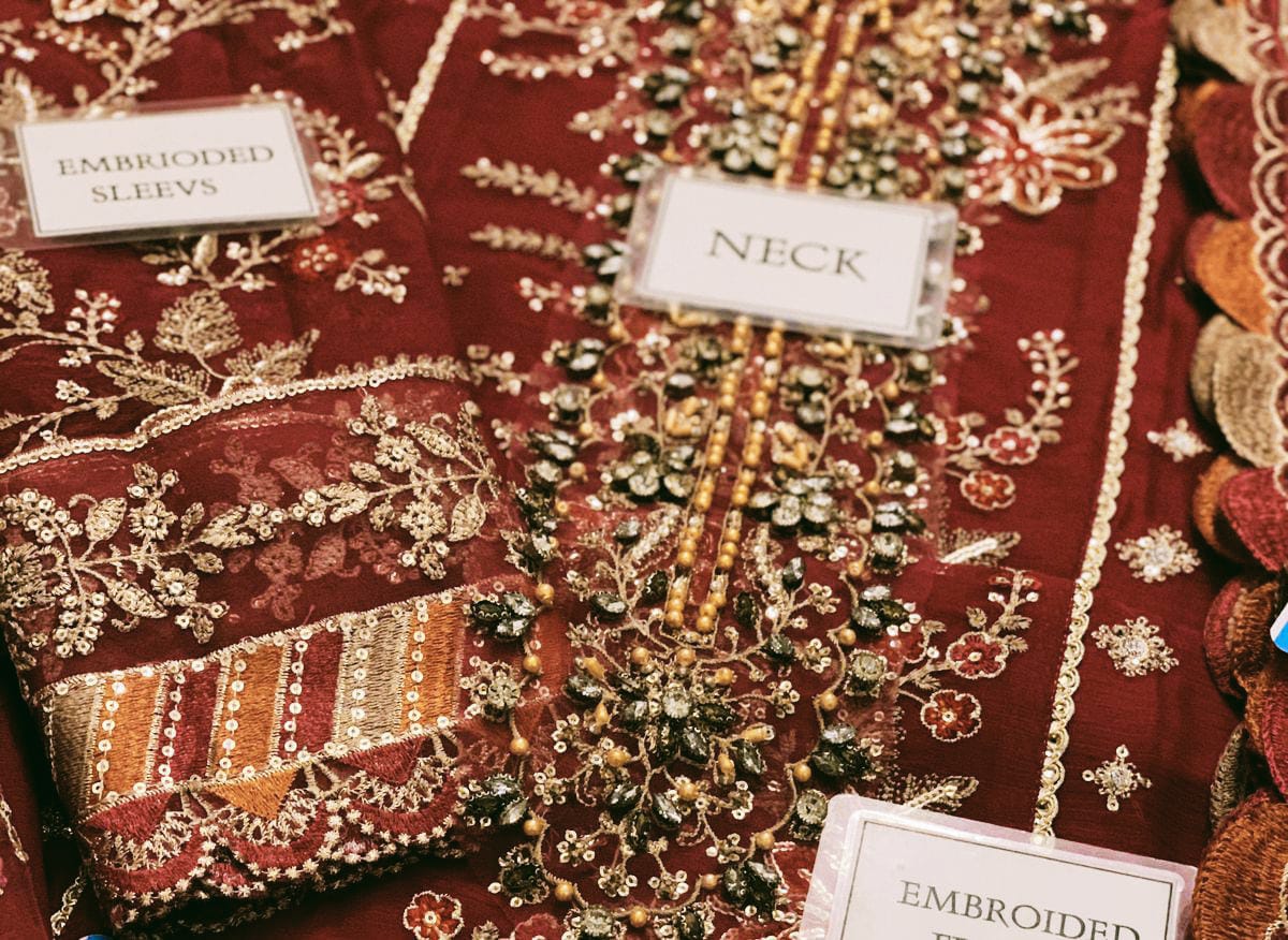 Detailed spangle embroidery and adda hand embellishment