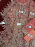 Front Ghair: Net fabric adorned with heavy embroidery and handwork, featuring open-style floral bunches for a statement look.