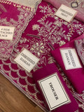 Dupatta: Fully heavy embroidered organza dupatta with four-side embroidered cutwork borders and embroidered pallu, finished with hanging pearl lace