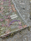 Dupatta: Heavy multi-embroidered net dupatta with 4-side embroidered spangle borders, cutwork finishing, and ready-to-wear convenience.
